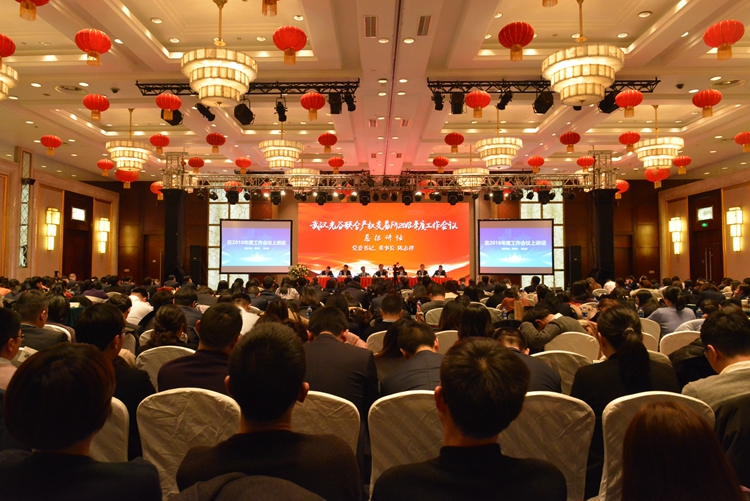 光谷联交所本部、武汉股权托管交易中心、湖北碳排放权交易中心、武汉知识产权交易所、武汉国际矿业权交易中心、湖北环境资源交易中心、恩施硒资源国际交易中心、湖北联合资本管理公司、江城公司、各控股市州公司的全体干部员工,参股市州机构主要负责人参加了会议。