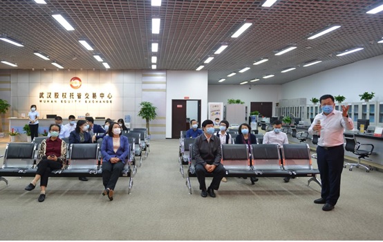 5月10日上午,省科技厅党组书记、厅长王炜,副厅长葛琳率调研组一行来我所调研科技金融服务创新工作,我所党委书记、董事长曾庆祝,总经理范蕴玉,副总经理、总法律顾问龚波,副总经理刘汉武接待了调研组一行,陪同考察了光谷资本大厦、“中国产权市场从这里起步”宣传展示墙、股交中心交易大厅和武汉知识产权交易所。