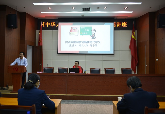 10月29日上午,我所以现场会议+视频同步直播的形式举办《民法典》专题培训,特邀湖北大学政法与公共管理学院陈小燕教授进行专题宣讲。所领导班子成员,本部及各控股子平台、市州公司干部员工近400人参加了培训。