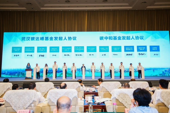 在随后召开的首届30·60国际会议上,曾董事长代表湖北碳排放权交易中心与武昌区、各大金融机构、产业资本签约了规模为100亿的“武汉碳达峰基金”,代表武汉知识产权交易所与国家电力投资集团、盛隆电气、正邦集团签约了规模为100亿的“碳中和基金”。新设立的两支百亿级的“碳基金”重点关注绿色低碳先进技术产业化项目,通过资本赋能加快绿色低碳转型提速,助力湖北省武汉市打造绿色低碳产业集群,实现中部绿色崛起。