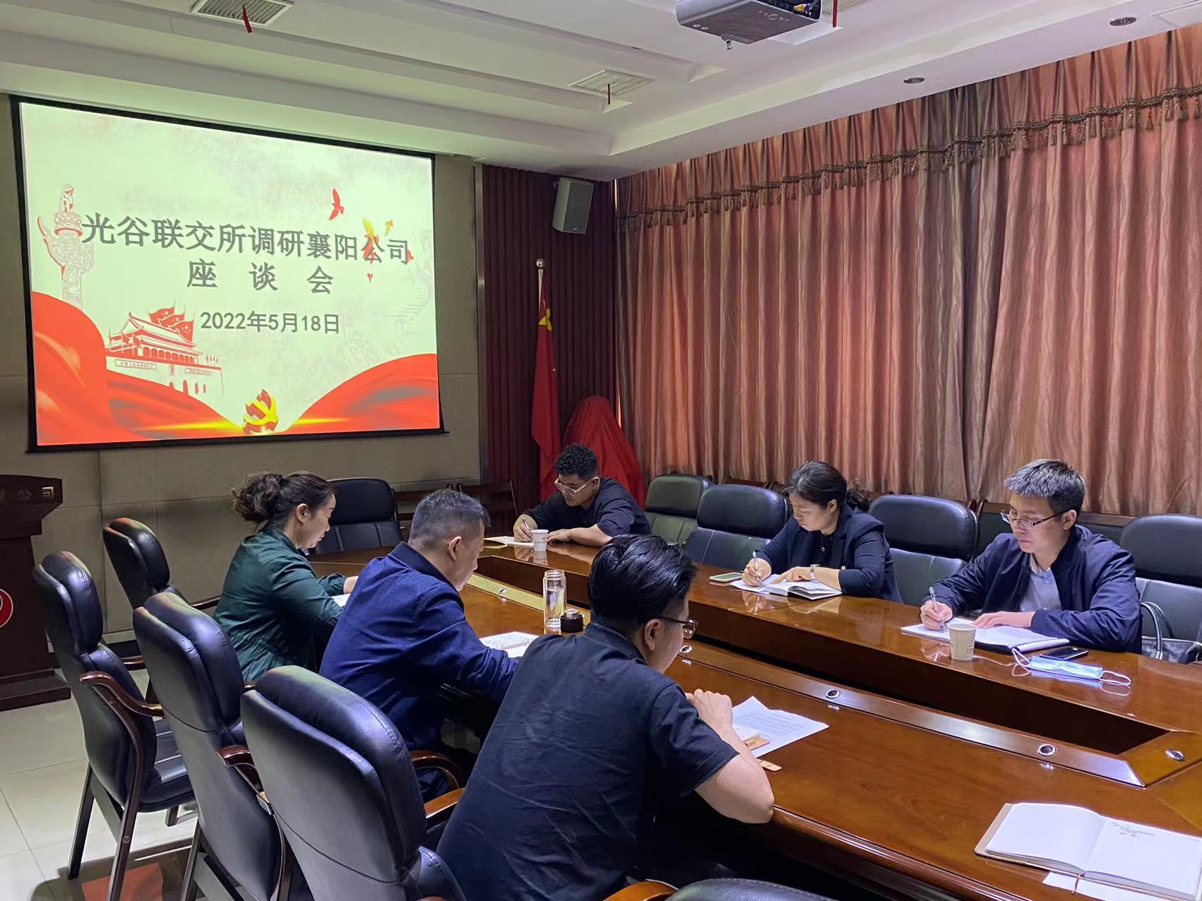 5月18日,我所党委委员、副总经理颜帅,党委委员、副总经理曹磊一行赴襄阳公司调研,对襄阳公司发挥平台功能,做好集团内业务协同,力促业绩提升提出了工作要求。会后,调研组赴襄阳市国资委,与该委党委委员张显国、产权管理科科长罗爱国就支持襄阳公司发展进行了交流座谈。