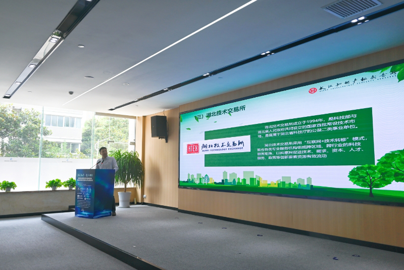会上,武汉知识产权交易所董事长王文杰就绿交中心成立背景、未来规划、核心功能等相关内容进行了推介。