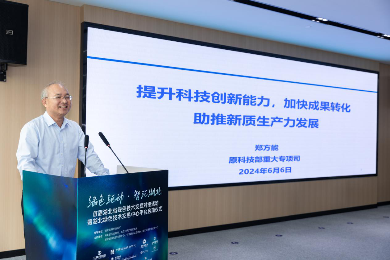 6月6日上午,由武汉知识产权交易所等单位主办的首届湖北省绿色技术交易对接活动暨湖北绿色技术交易中心(以下简称“绿交中心”)启动仪式在湖北武汉举行。湖北省科技厅副厅长陈俊出席并致辞。