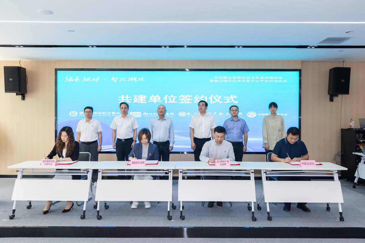 湖北万形生态环境设计院与中科院水生所、武汉中科锂安先进材料科技有限公司与武汉中科先进技术研究院、中南民族大学与湖北金润德环保技术有限公司就3个绿色技术交易项目进行了现场签约。