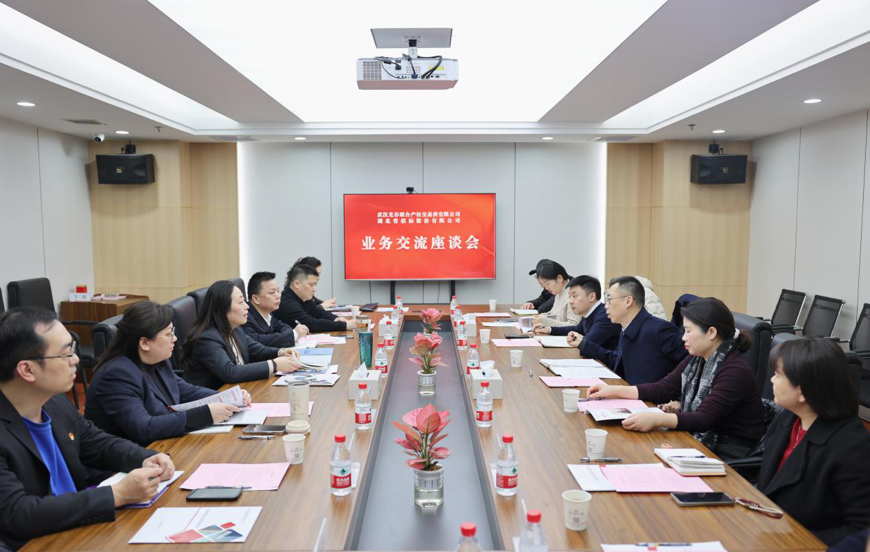 2月14日,湖北省招标股份有限公司党委书记、董事长黎明一行到访光谷联交所,我所党委书记、董事长杨静和党委副书记、总经理郑昀辉热情接待并举行座谈。双方围绕产权业务和招标采购、司法辅助、知识产权等方面深入交流,探讨进一步合作。