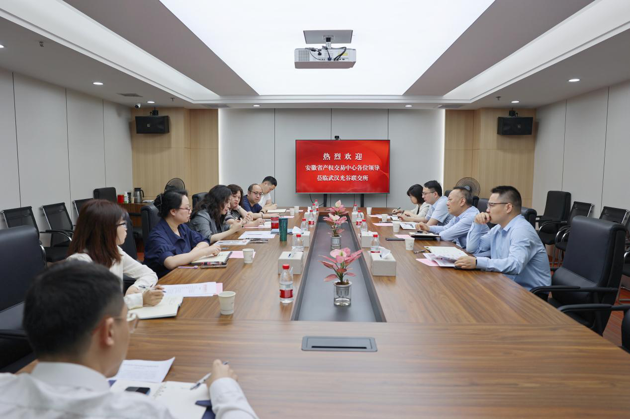安徽省产权交易中心信息部、资本运营部、综合部、安徽省知识产权交易所负责人;光谷联交所党委副书记、副总经理赵飞、业务一部、业务四部、信息技术部负责人、办公室等工作人员;武汉知识产权交易所总经理参加本次座谈。