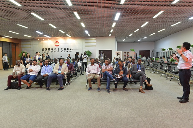 龚波副总经理在光谷资本大厦接待了多哥和毛里塔尼亚考察团,陪同参观了光谷联交所和股交中心交易大厅,向考察团一行介绍了湖北产权市场和要素市场建设情况及工作成效,并就具体问题进行了互动交流。