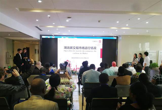 刘汉武副总经理在知音广场接待了非洲法语国家考察团,陪同参观了碳交中心交易大厅,向考察团一行介绍了湖北碳市场运行情况及相关工作成效,并就具体问题进行了互动交流。